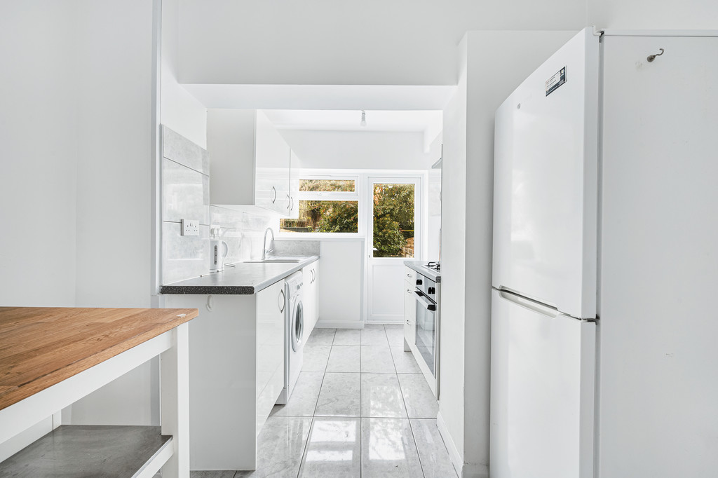 KITCHEN 13' 0" x 8' 2" (3.96m x 2.49m) fridge/freezer ; built-in oven, hob and extractor ; washing machine. Door to garden