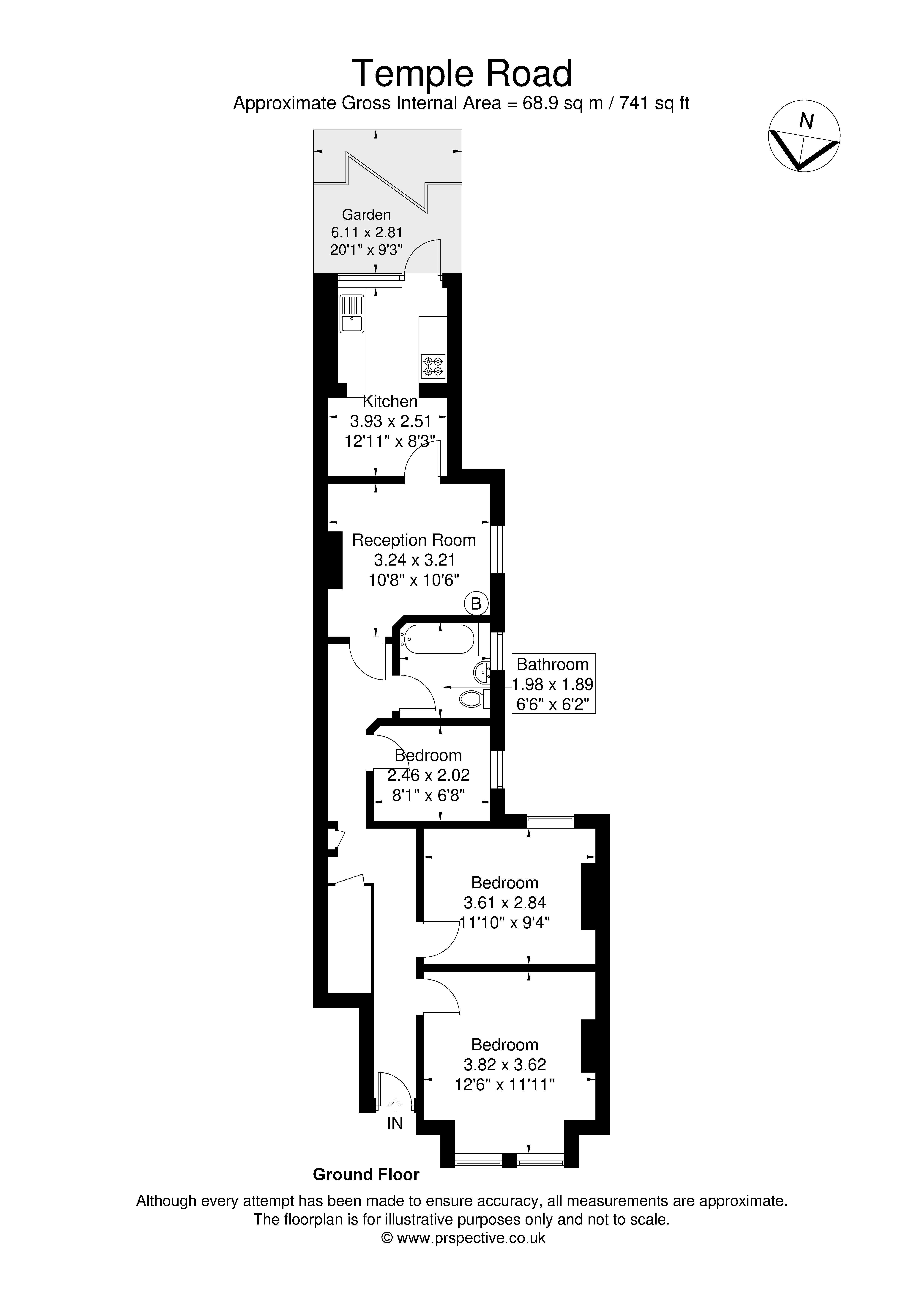 GARDEN 20' 0" x 0' 0" (6.1m x 0m) private rear garden, South facing