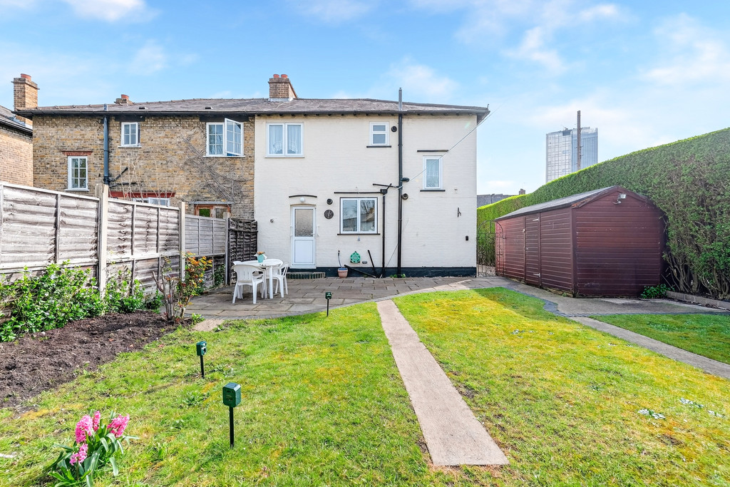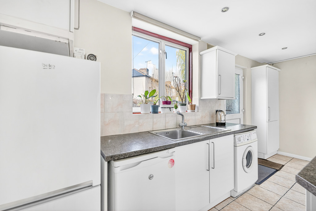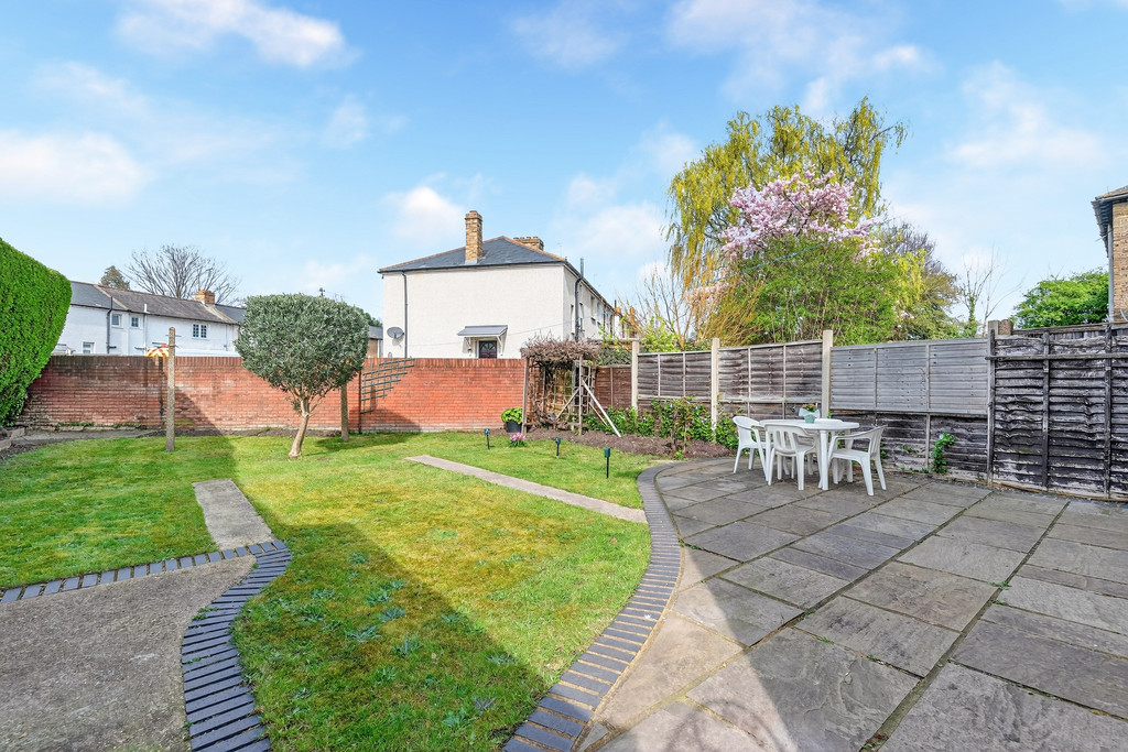 The ground floor includes a bright dual aspect living room and a spacious kitchen that opens directly onto a wide rear garden, with the added benefit of side access. Upstairs are three well-proportioned bedrooms and a modern shower room with WC. Off street parking is available at the front of the property.