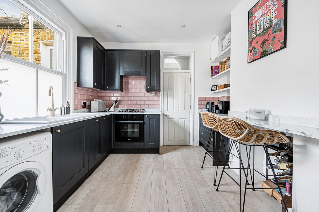 Set across the top two floors of a Victorian terrace, this refurbished duplex apartment offers generous, well-planned living close to Brentford's growing High Street and riverside. The first floor includes a full-width living room with a dual-fuel cast iron stove, a bright modern kitchen, a stylish bathroom with separate shower, and a double bedroom, all arranged around a large central landing.