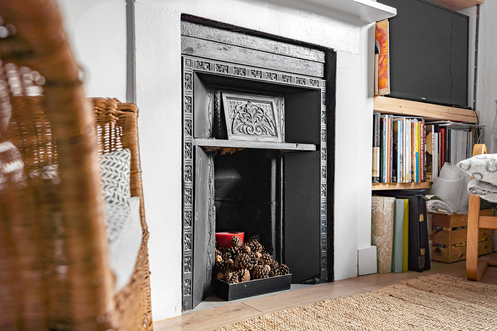 BEDROOM Cast iron fireplace, radiator, double-glazing, loft access, panelled wall, door to:
