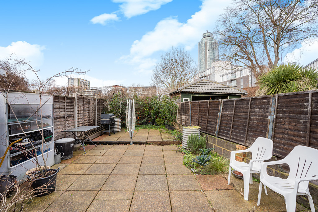 REAR GARDEN Sheds, patio, side gate, outside light & tap.
