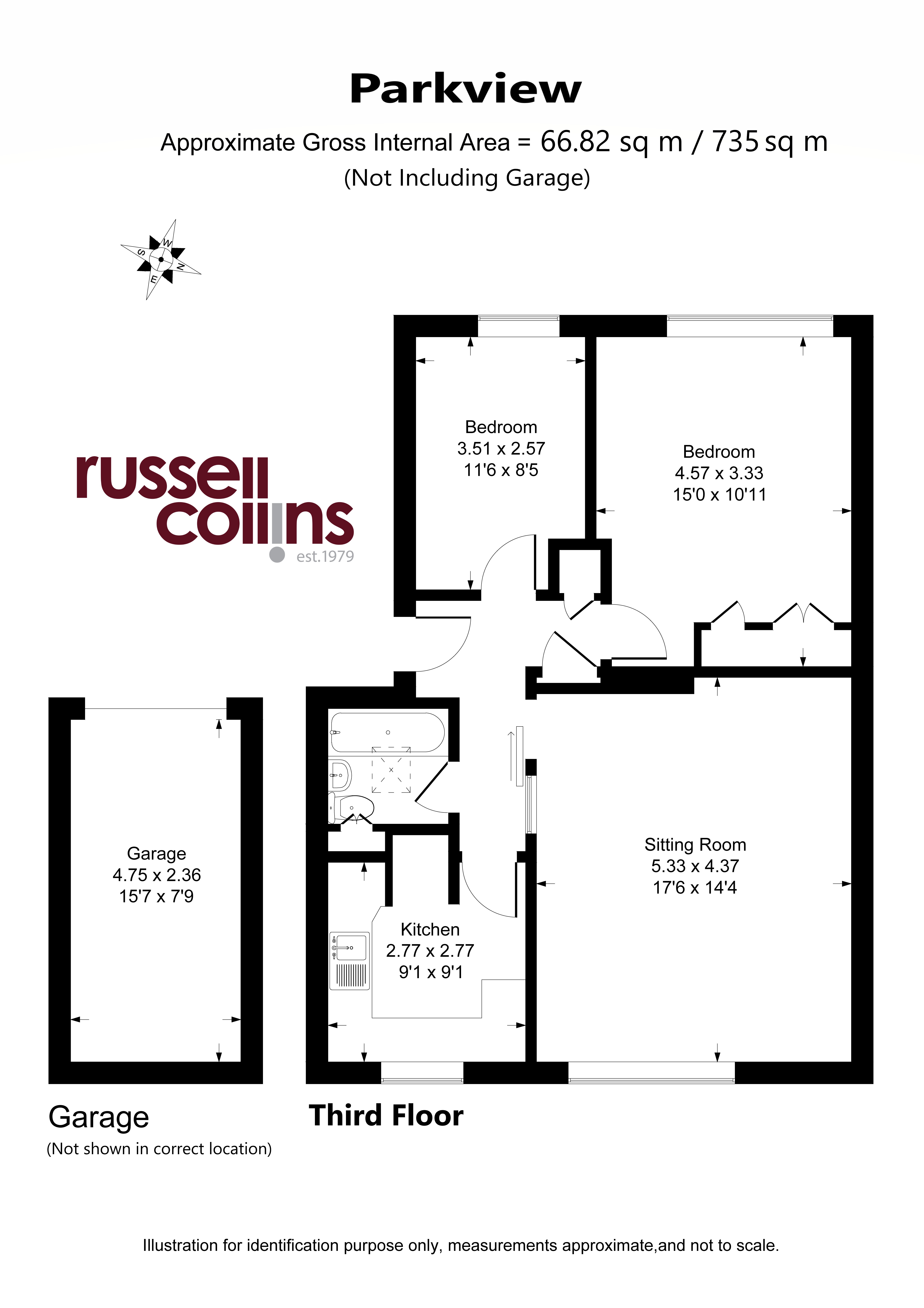This spacious two-bedroom top-floor flat (735 sq ft / 66.8 sq m) sits within Parkview, a well-maintained, gated 1960s development surrounded by attractive communal gardens. The property includes the rare benefit of its own garage and a long 999-year lease (from 2015).