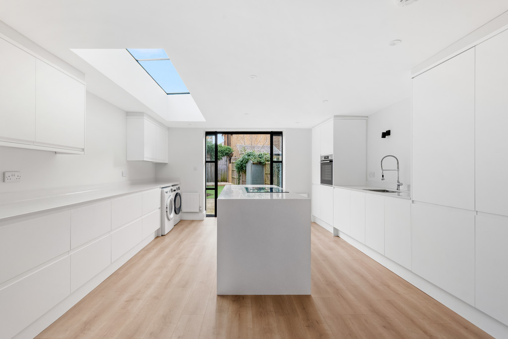 A 3 double bed Terrace (+ study area) and two bathrooms. A substantial kitchen extension incorporates integrated Bosch appliances and opens via French doors to a notably large garden. Superbly located by Lammas Park. No onward chain.
