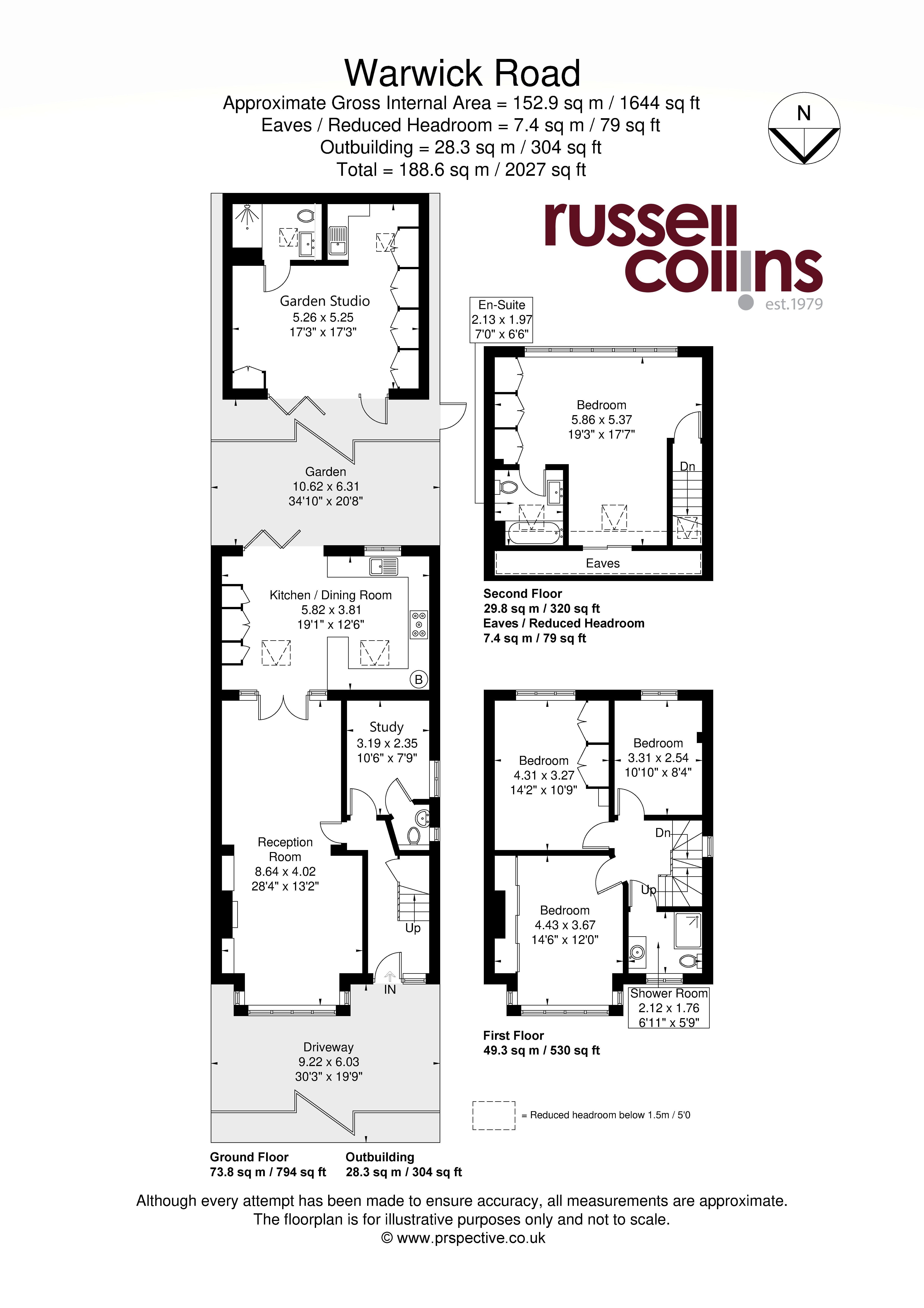 OVERALL SIZE 2027 sq ft (188.6 sq m) - including garden studio.